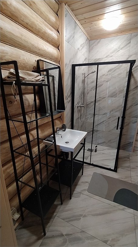 Теплые полы расслабляют после прогулок по лесу, горячая сауна согревает холодными вечерами, прозрачная купель поможет улучшить качество отдыха.