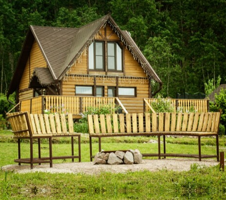 Для проживания предоставляются уютный коттедж, выполненный в традиционном загородном стиле с использованием натуральных материалов и отделкой из дерева. Здесь есть все необходимое для удобства отдыхающих.
