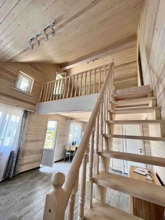 К услугам гостей коттедж по финскому проекту площадью 87 кв. м. В двухэтажном коттедже могут разместиться до 8 гостей в 3 спальнях. В распоряжении гостей крытая терраса с видом на озеро площадью 16 кв. м, балкон, крыльцо, можжевеловая сауна на берегу Ладоги, причал для катеров и лодок, а также Wi-Fi, Smart-TV, оборудованная кухня с электроварочной панелью, холодильником, посудомоечной машиной, микроволновой печью, посудой и приборами, обеденный стол на 8 персон, раздельный санузел и душевая, тёплые полы, стиральная машина, фен, утюг.