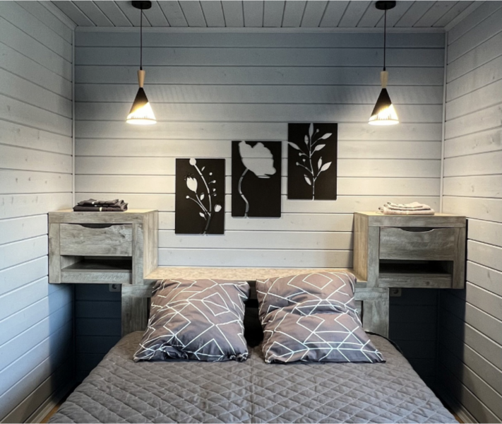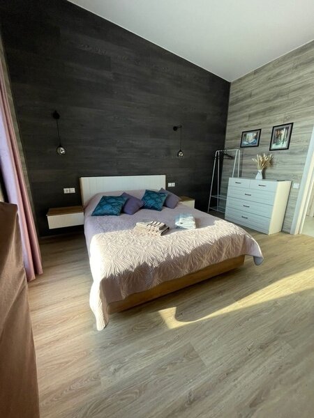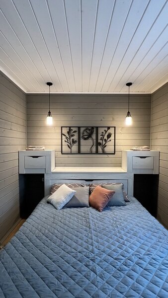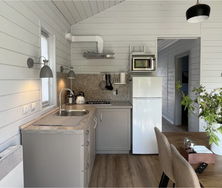 Большой дом вместимостью до 8 человек. В доме две отдельные спальни с личными санузлами, огромная кухня-гостиная.