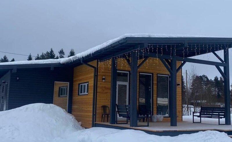 Новый современный коттедж в 50 метрах от реки Савайнйоки и 150 метрах от Ладожского озера, в прекрасном тихом месте. Домик 50 м2 и просторная терраса.