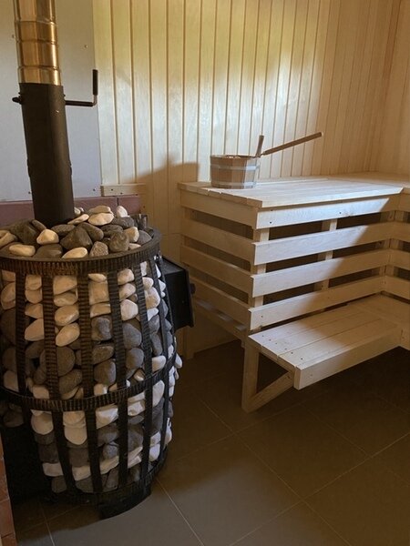 -Чудесная баня на дровах. Просторная сауна, комната отдыха, эксклюзивная сенная комната, обливная кадушка.