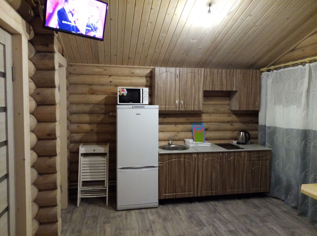 Максимальная вместимость 5 чел. В зале расположен двуспальный диван. В спальне двуспальная кровать. Душ, туалет с холодной и горячей водой, сушилка для одежды. Оборудованная кухня (холодильник, посуда для приготовления еды, варочная панель, электрический чайник. Около дома есть терраса с мангалом и барбекю.