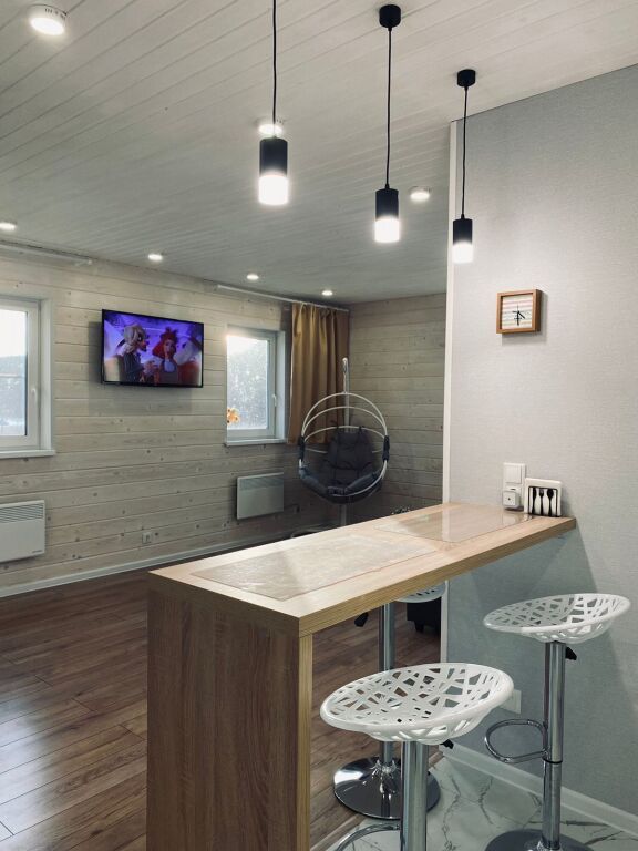 Новый деревянный каркасный дом площадью 60 м² с открытой террасой идеально подходит для семьи, пары или небольшой компании друзей. В доме есть всё необходимое для комфортного проживания: полноценная кухня с холодильником, индукционной плитой, СВЧ-печью, чайником и посудой, а также барная стойка. Для удобства предусмотрены холодильник с морозильной камерой, утюг, фен, стиральная машина, сушилка для белья и пылесос. В доме есть горячая вода, душ, гардеробная, постельное бельё и полотенца. Для самых маленьких гостей — стульчик для кормления и горшок. Также в доме есть Wi-Fi и цифровое телевидение.