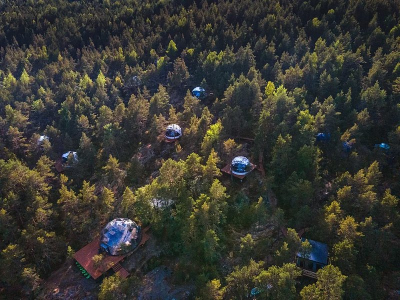 Размещение во всех программах происходит в геокуполах глэмпинга. Подробное описание как все устроено внутри геокупола и на территории глэмпинга можно найти на сайте.