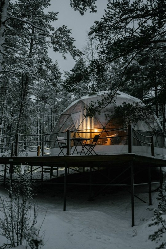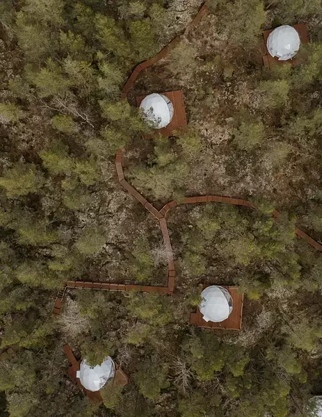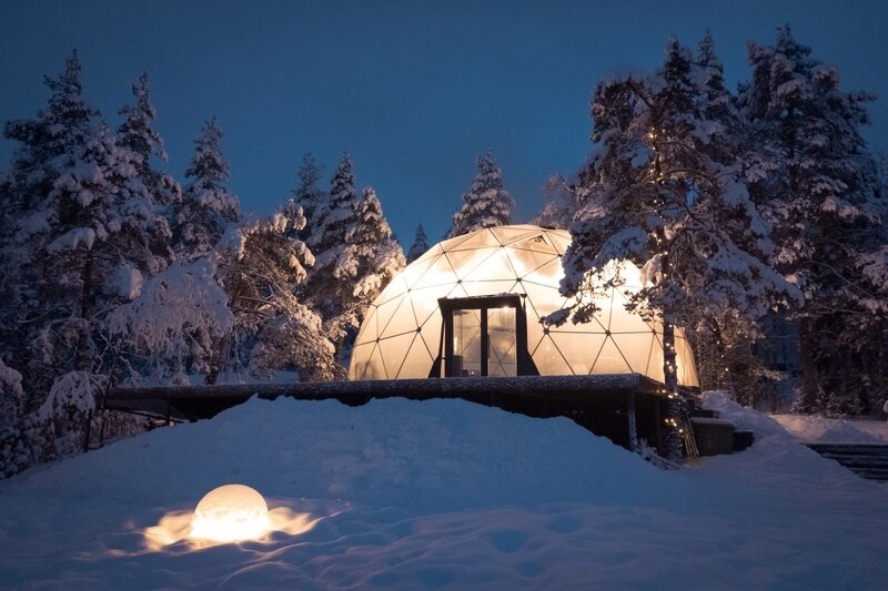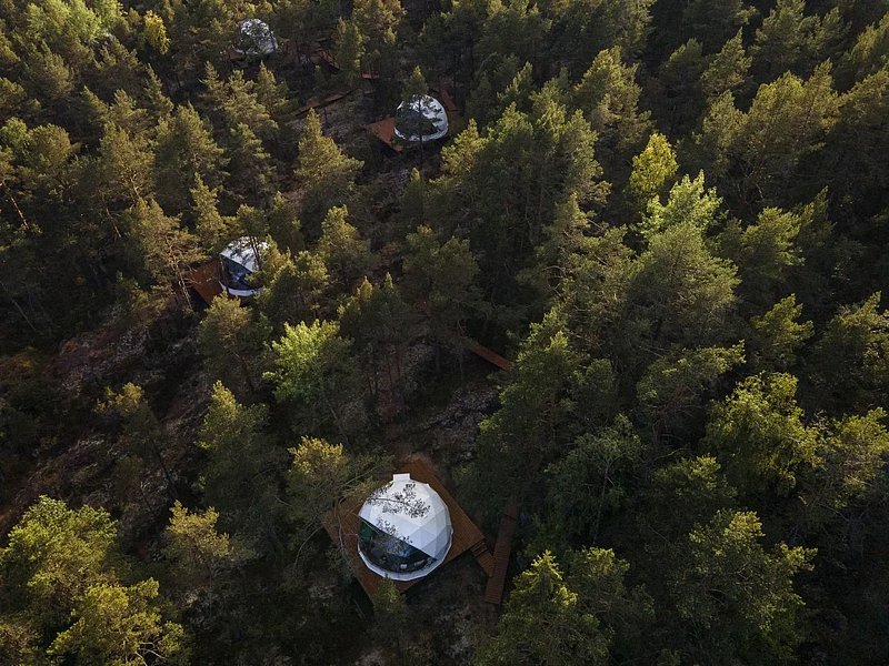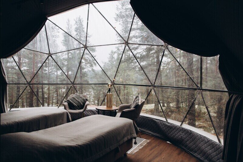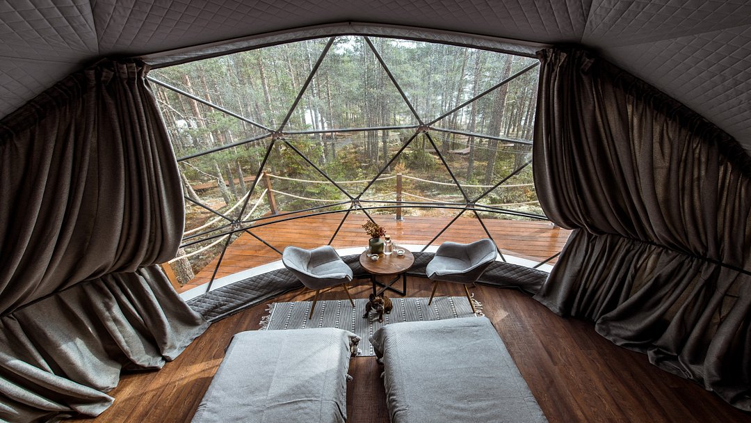 В каждом куполе есть электропростыни и камин с автоматической подачей топлива.