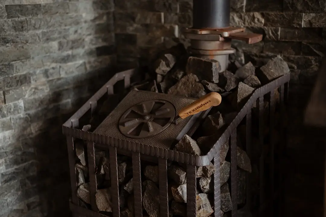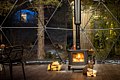 Тепло в куполе поддерживается пеллетным камином, здесь уютно и комфортно в любое время года. Есть электричество и розетки для подключения техники и проектора.