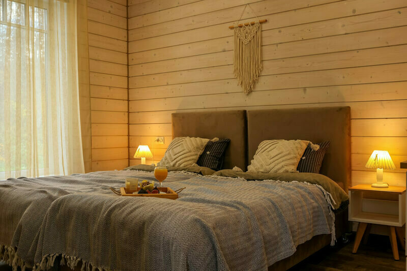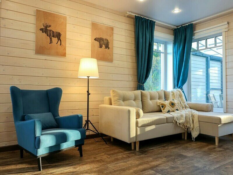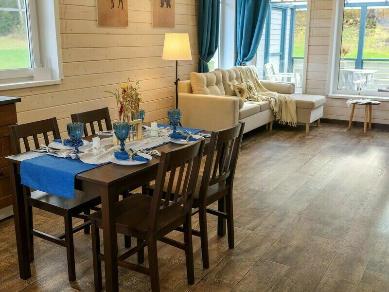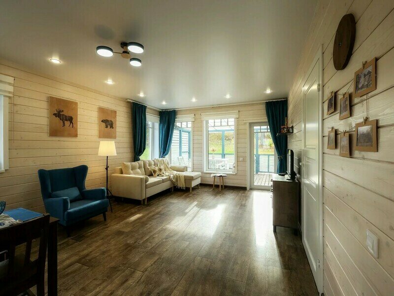 Уютный коттедж полностью подготовлен к размещению семьи или компании друзей до четырёх человек. Он обустроен удобной мягкой мебелью, современной техникой и собственной ванной комнатой со стиральной машиной. Среди удобств гости найдут ЖК-телевизор, Wi-Fi и наборы полотенец.