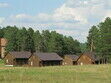 Небольшие уютные домики рядом с соснами. Отопление, раздельные кровати, шкаф. Удобства в соседнем корпусе.