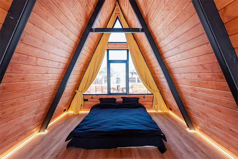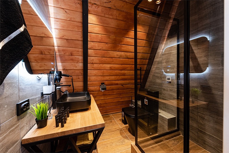 В глэмпинге «Атмосфера» вам предложат небольшие домики с широкими окнами, открывающими вид на природу. В каждом домике есть удобная мебель, система хранения, собственный душ и туалет. Для комфортного проживания установлены кондиционеры и Wi-Fi.