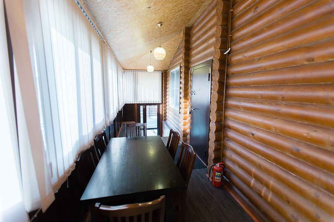 Располагается рядом со зданием администрации комплекса. Веранда, вмещающая до 80 человек, выполнена из дерева, с окнами по всему периметру, благодаря чему в ней много света.