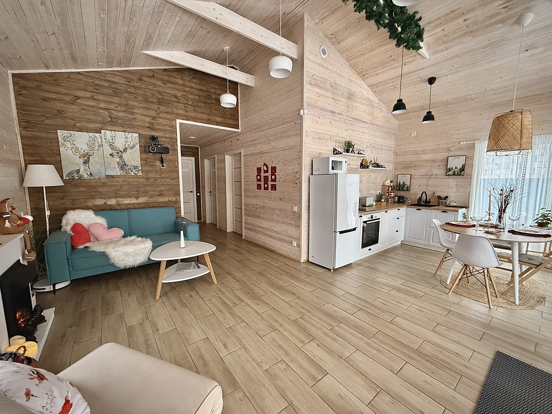 Дом рассчитан на 5 взрослых и 2 детей — комфортно, просторно и по-домашнему.