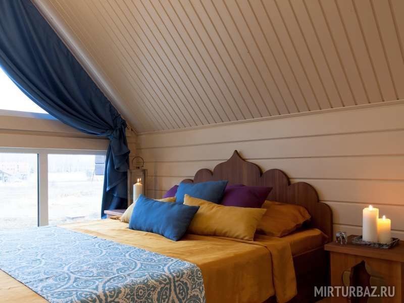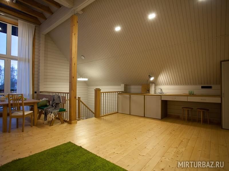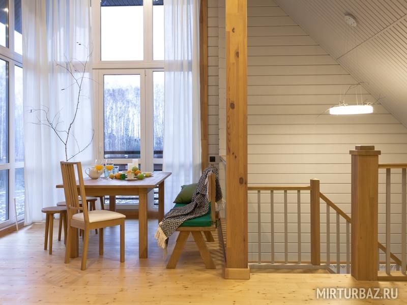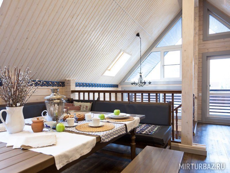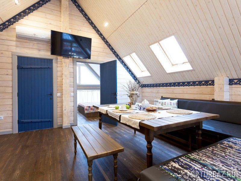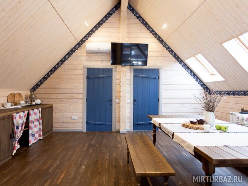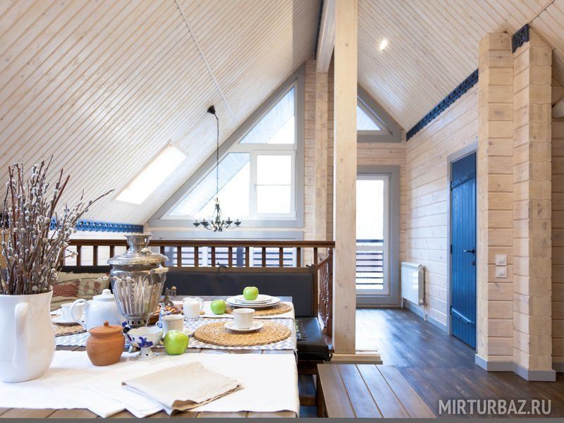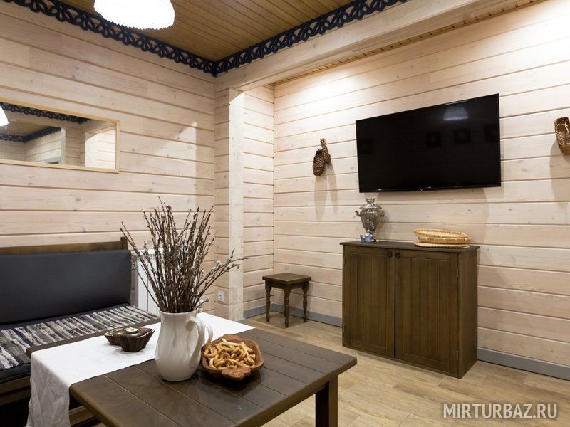 К размещению предлагаются коттеджи различной вместимости с банями. Все дома выполнены из натурального дерева.