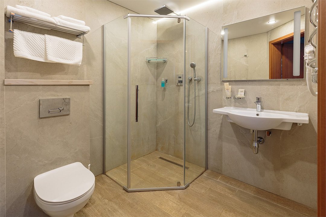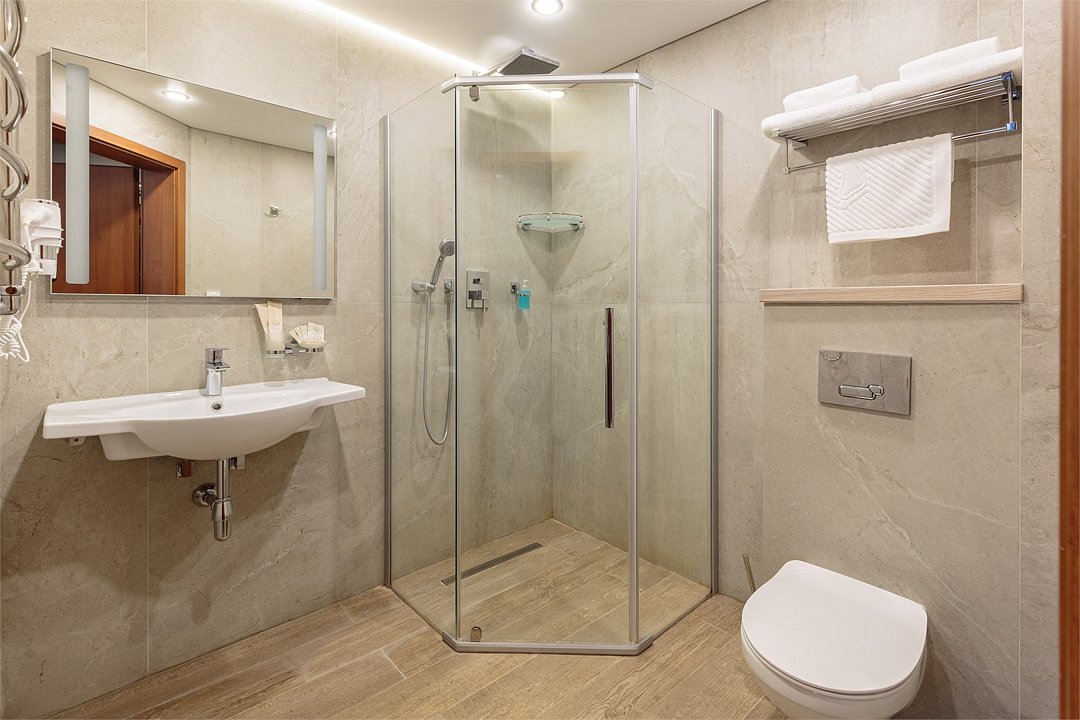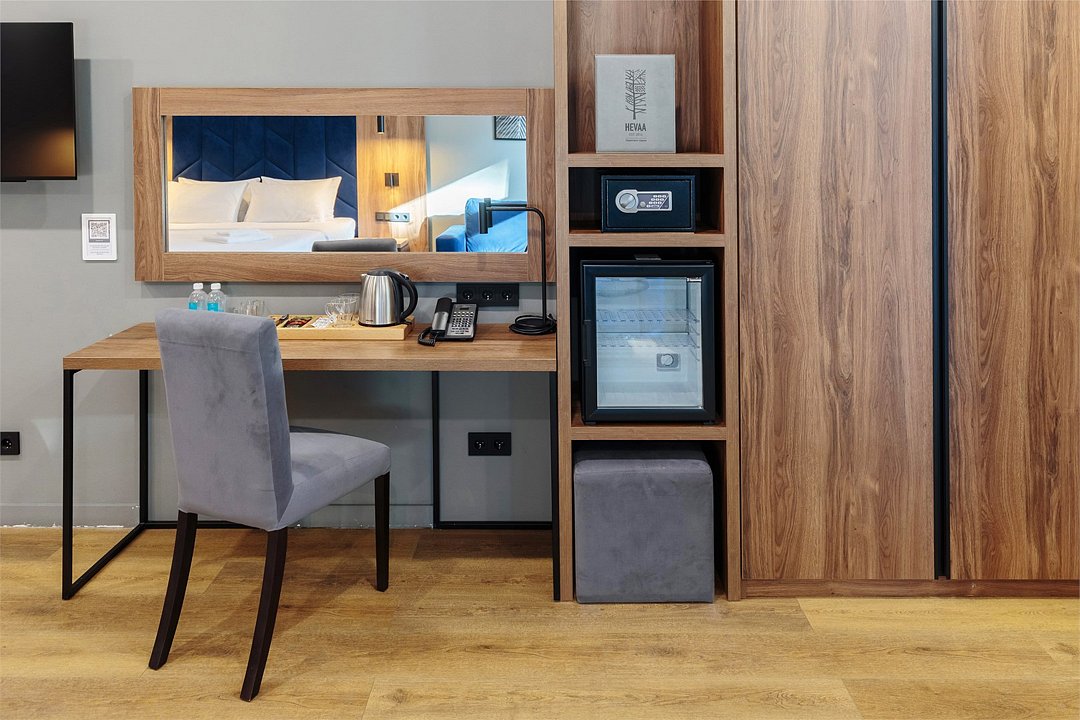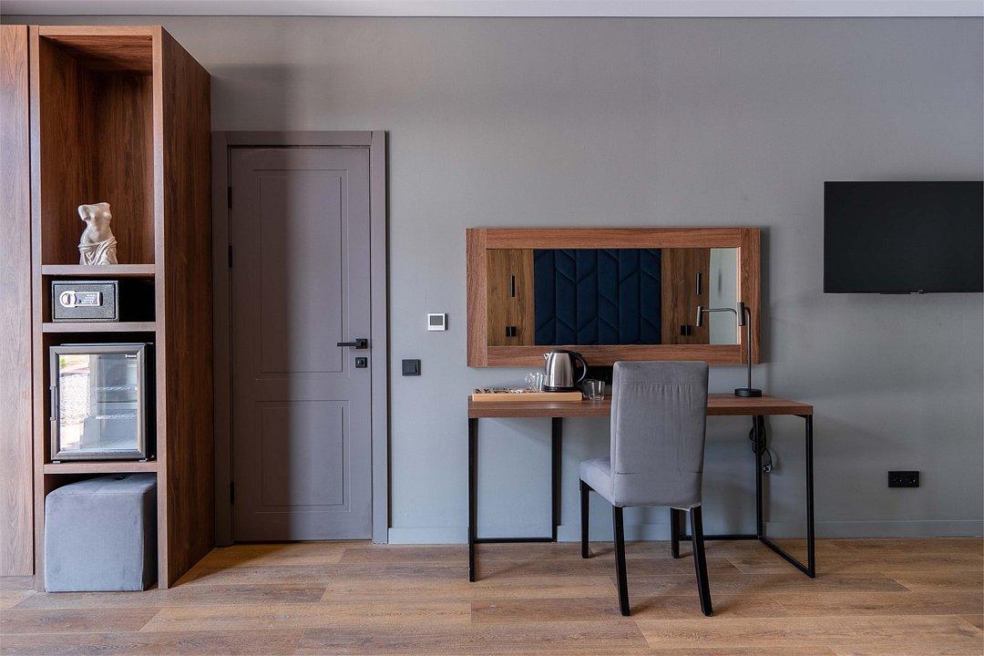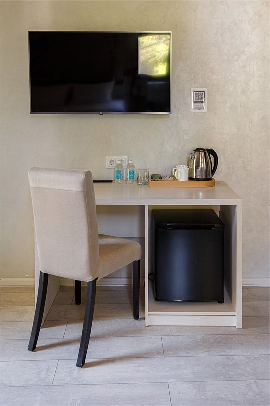 Wi-Fi, телефон, светильник, настольные лампы, фен, вентилятор, душевая кабина, санузел, теплый пол, банные полотенца, тапочки, косметические средства, балкон, две односпальные или большая двуспальная кровать, шкаф для одежды, вешалки, письменный стол, багажная тумба, зеркало, мини-бар, чайный набор, обслуживание номеров, сейф, чайник, раковина, питьевая вода, отопление, ламинат, стаканы, стул, телевизор с плоским экраном, мини-холодильник, номер для некурящих, мыло, можно с питомцамиВ гостиничном номере
