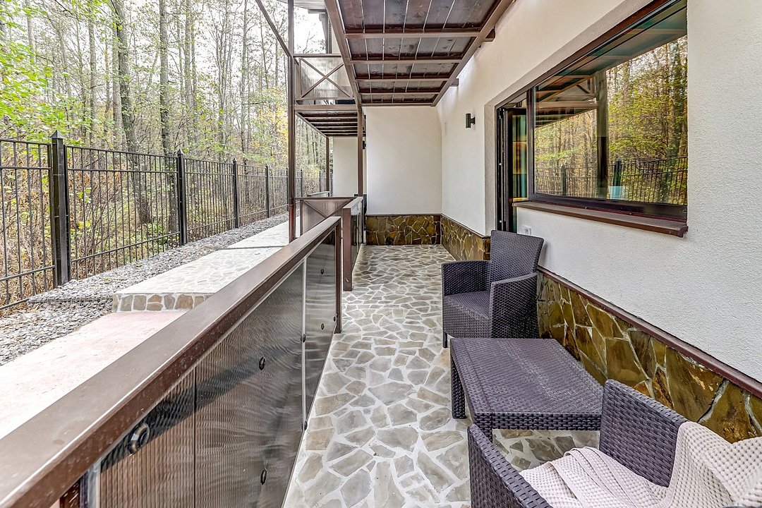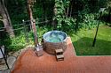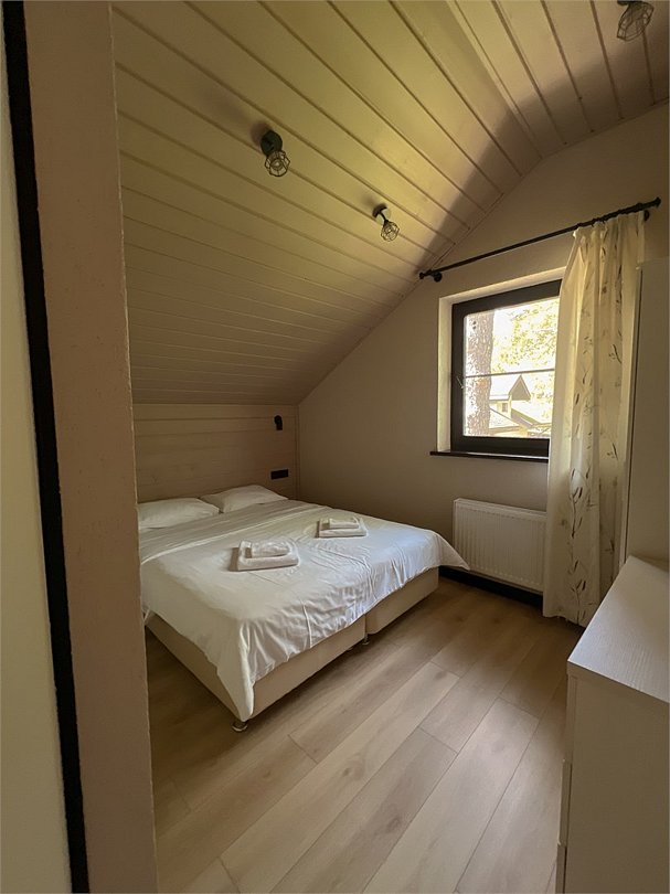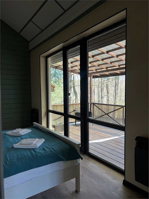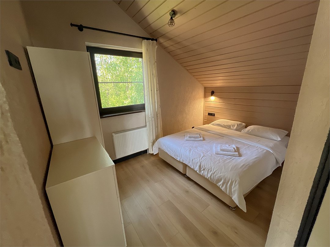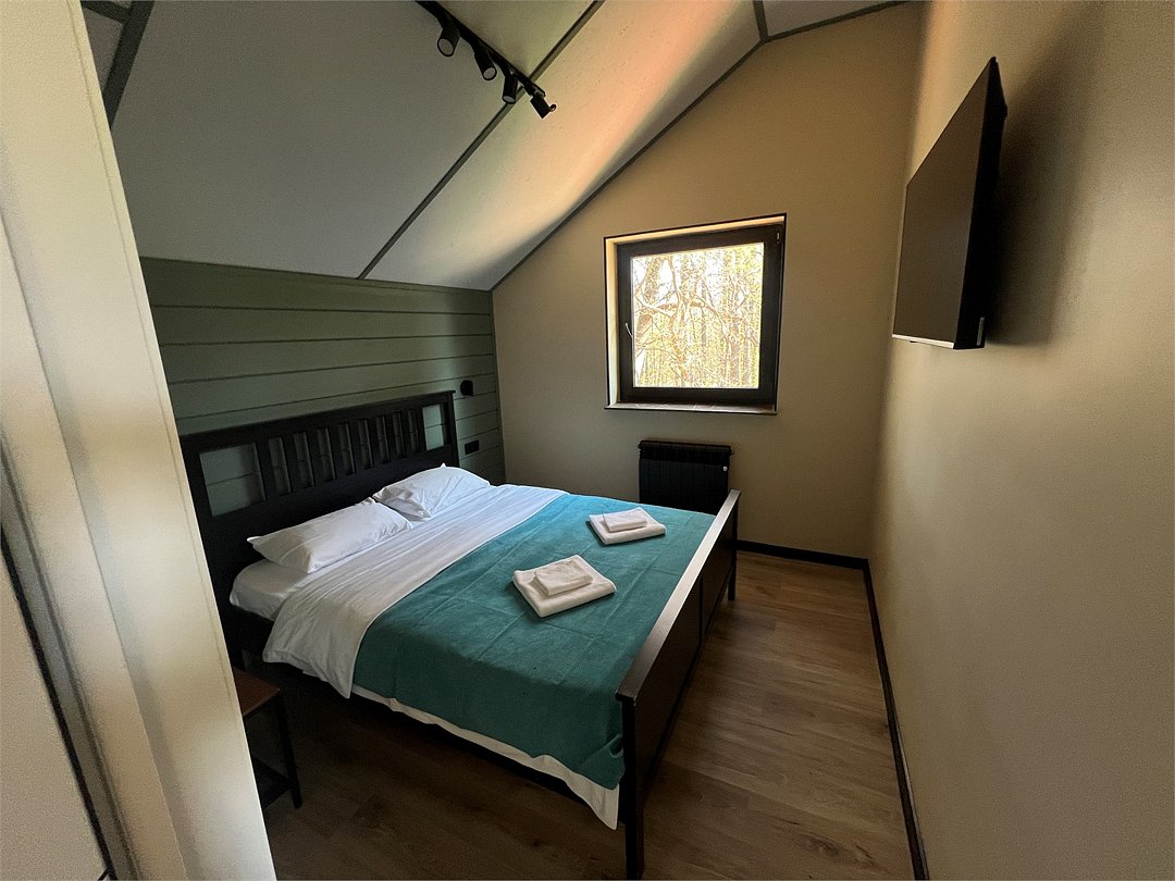 Уютный двухкомнатный домик с баней. Состоит из гостиной и спальни. В гостиной находится мини-кухня и обеденная зона. Спальные места: двуспальная кровать и раскладной диван в кухне-гостиной (размещение на диване оплачивается дополнительно). Рядом с домом оборудована мангальная зона, купель (растопка купели оплачивается дополнительно). При заезде взимается залог 5000 руб, который будет возвращен Вам в день выезда.Услуги и удобства