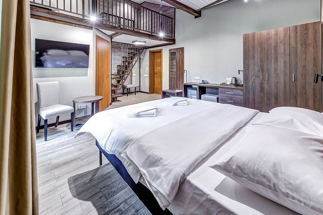Wi-Fi, светильник, фен, вентилятор, ванная комната, душевая кабина, санузел, халаты, банные полотенца, тапочки, гигиенические средства, косметические средства, сауна, балкон, две двуспальные кровати, две односпальные кровати, стулья, шкаф для одежды, вешалки, журнальный столик, письменный стол, багажная тумба, зеркало, чайный набор, обслуживание номеров, сейф, чайник, раковина, питьевая вода, отопление, душ, ламинат, стаканы, стол, тумба, туалетные средства, туалет, внутренний телефон, мини-холодильник, москитная сетка, телевизор со Smart TV, вид на лес, пуфик, рабочий стол, набор для приготовления чая и кофе, бутилированная вода, мыло, можно с питомцамиВ гостиничном номере
