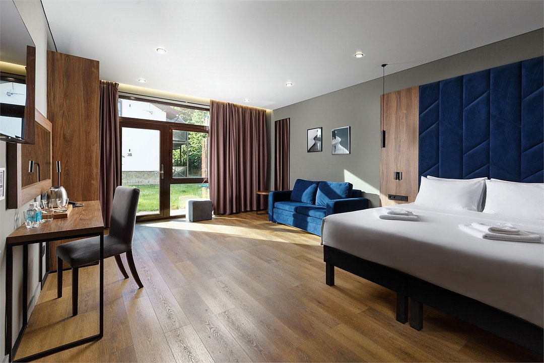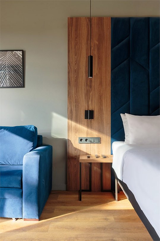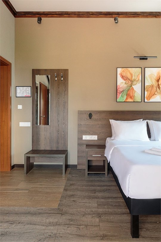 Улучшенный номер в современном скандинавском стиле. Во всех номерах предусмотрены балконы. Номера располагаются на 1-м и 2-м этажах гостиничного корпуса. Оснащение: подставка под чемодан, электрический чайник, жк-телевизор, мини-бар (незаполненный), сейф, косметические средства, фен, тапочки. Халаты, гладильная доска и утюг - по запросу. Кроватка для детей до 3х лет предоставляется бесплатно по предварительному запросу. Элементы декора номера могут отличаться от тех, что присутствуют на фото.Услуги и удобства