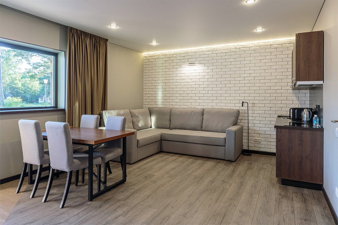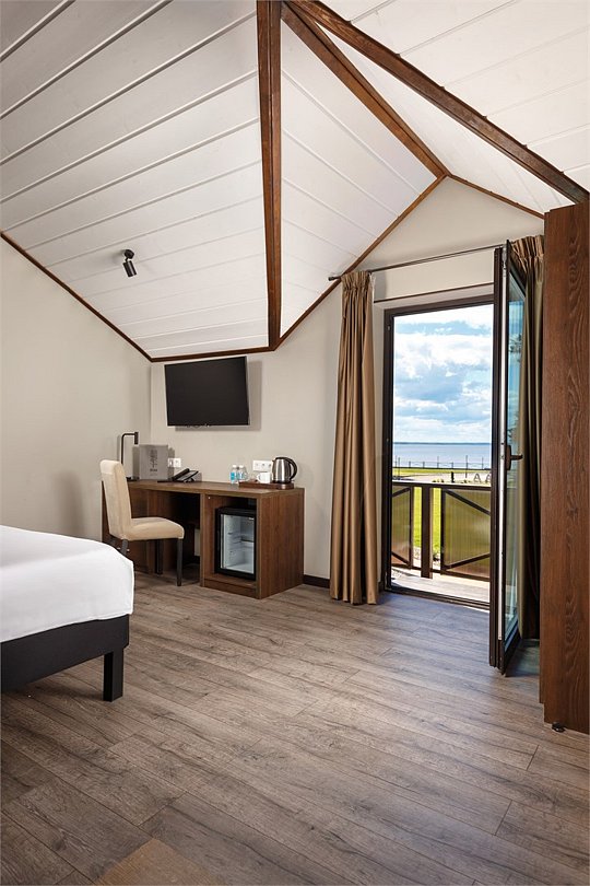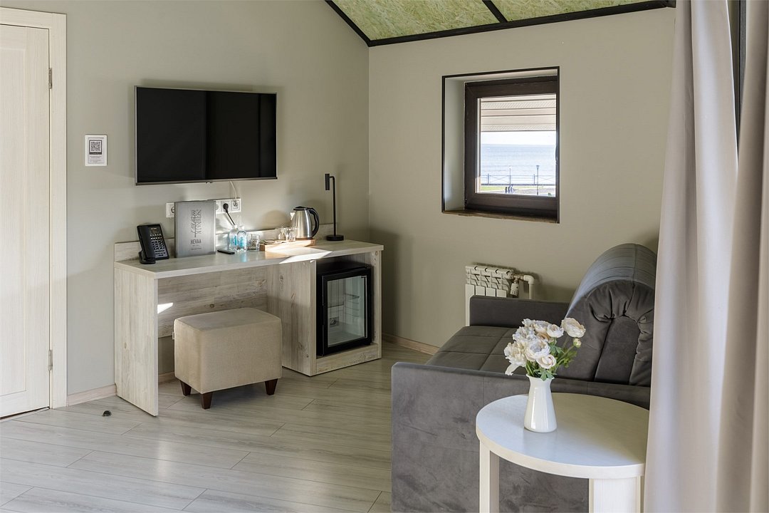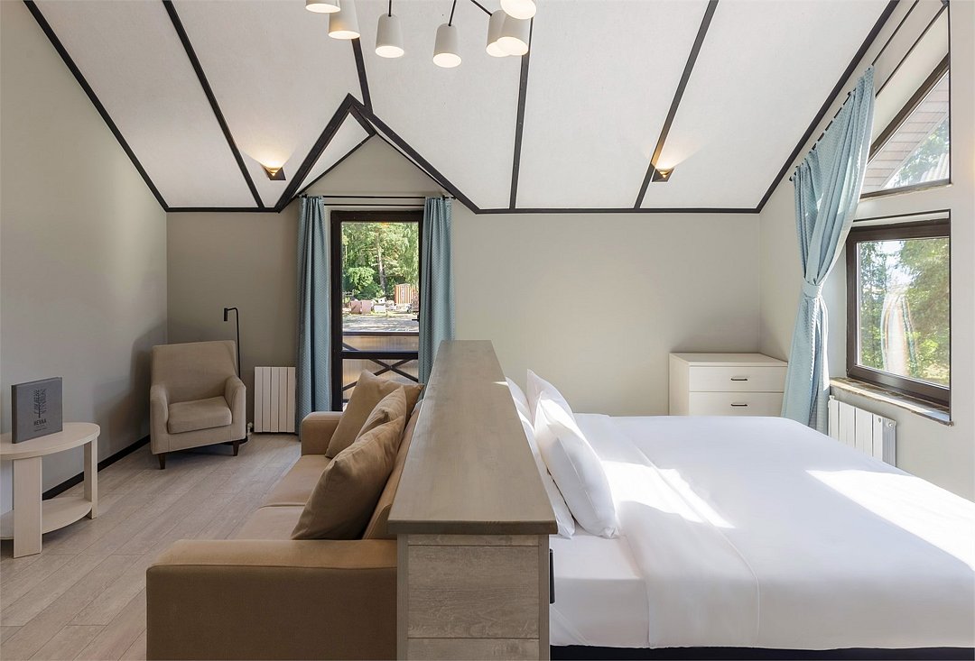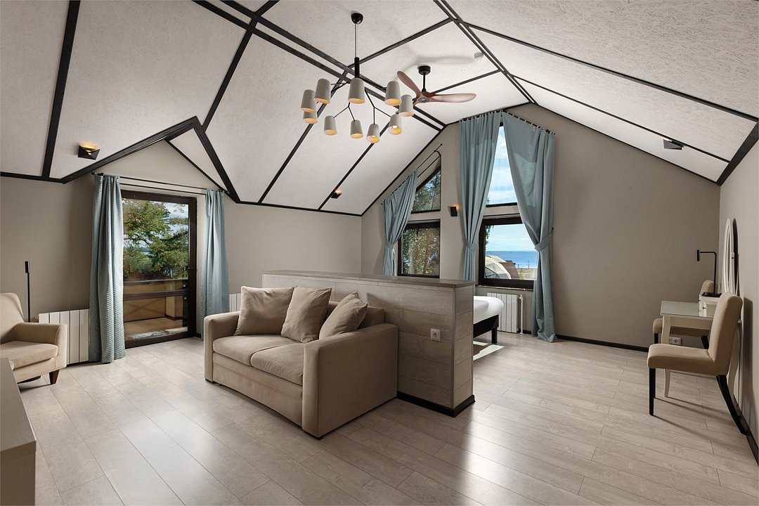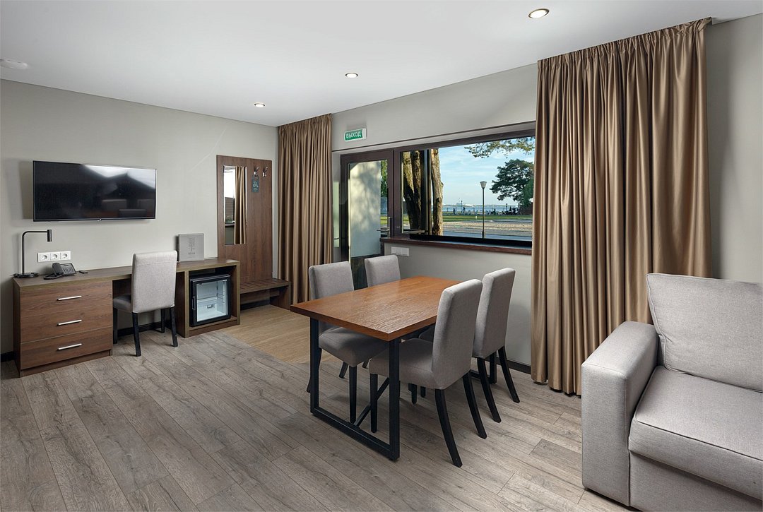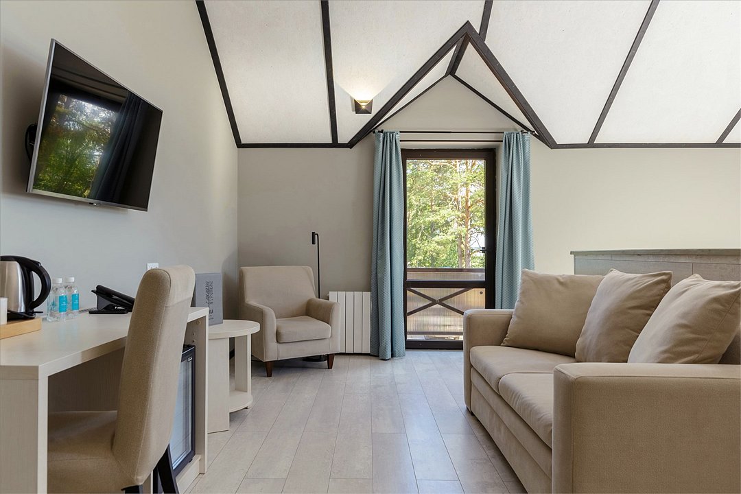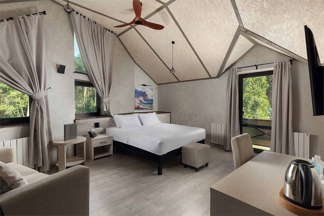 Просторный номер джуниор сьют в дизайне скандинавской классики, с прекрасным видом на территорию базы отдыха и залив. В номере двуспальная кровать и раскладной диван. Возможна установка детской кроватки. Элементы декора номера могут отличаться от тех, что присутствуют на фото.Услуги и удобства