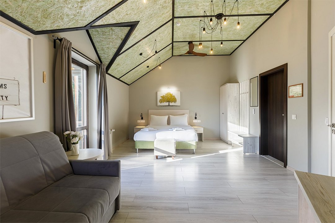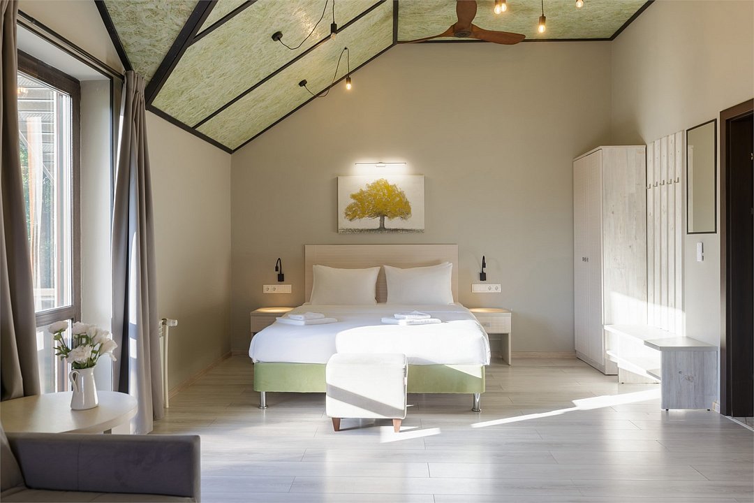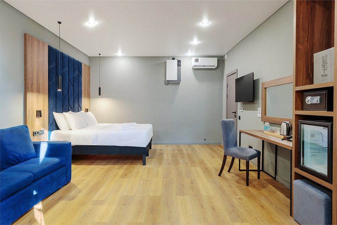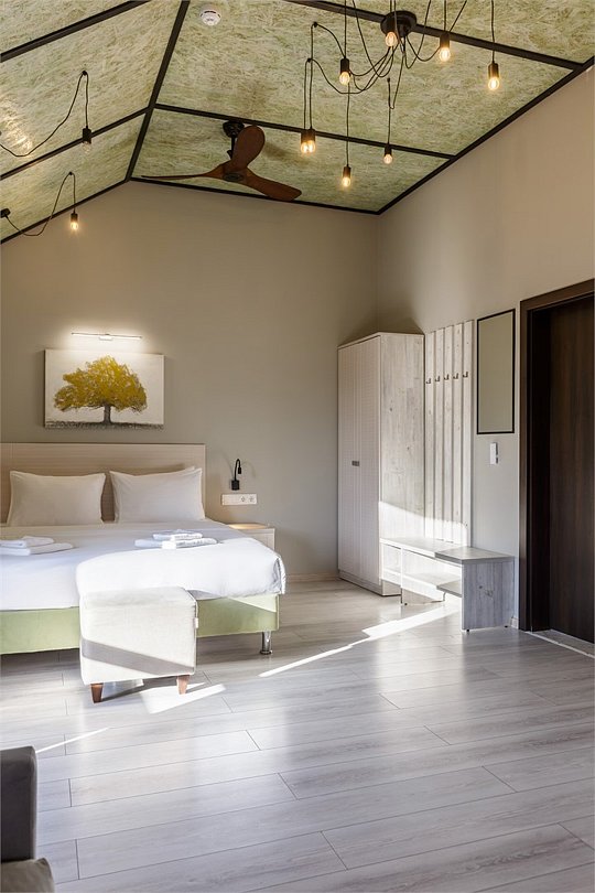 Wi-Fi, светильник, фен, вентилятор, ванная комната, душевая кабина, санузел, халаты, банные полотенца, тапочки, косметические средства, двуспальная кровать, диван, шкаф для одежды, вешалки, багажная тумба, зеркало, пуфики, чайный набор, обслуживание номеров, чайник, унитаз, раковина, косметическое зеркало, отопление, душ, вид во двор, высокие потолки, стаканы, стул, тумба, туалетный столик, туалетные средства, туалет, диван-кровать, внутренний телефон, мини-холодильник, москитная сетка, телевизор со Smart TV, номер для некурящих, пуфик, уборка номера, мыло, можно с питомцамиВ гостиничном номере