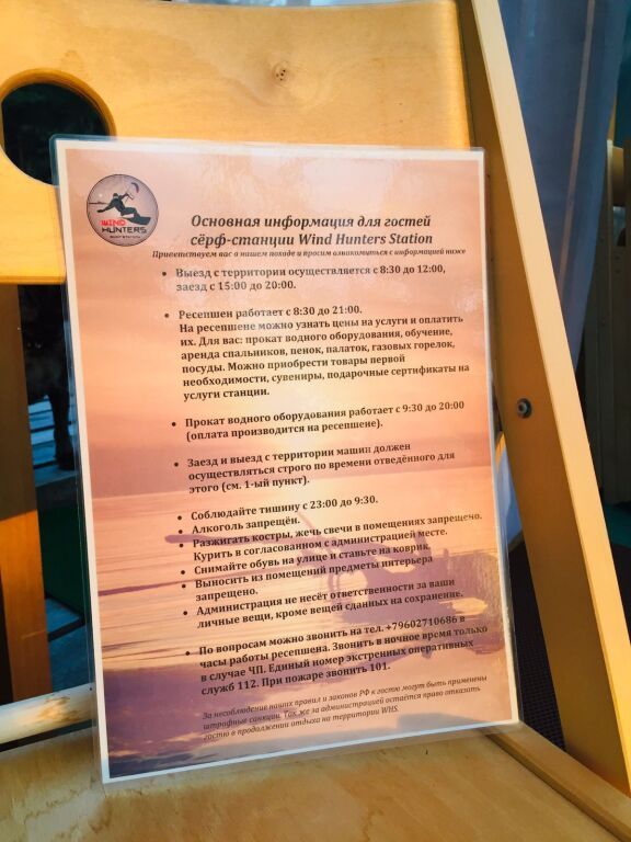 Часы заезда и выезда на сёрф-станцию с 9:00 до 20:00. Учитывайте это при планировании времени заезда и выезда.