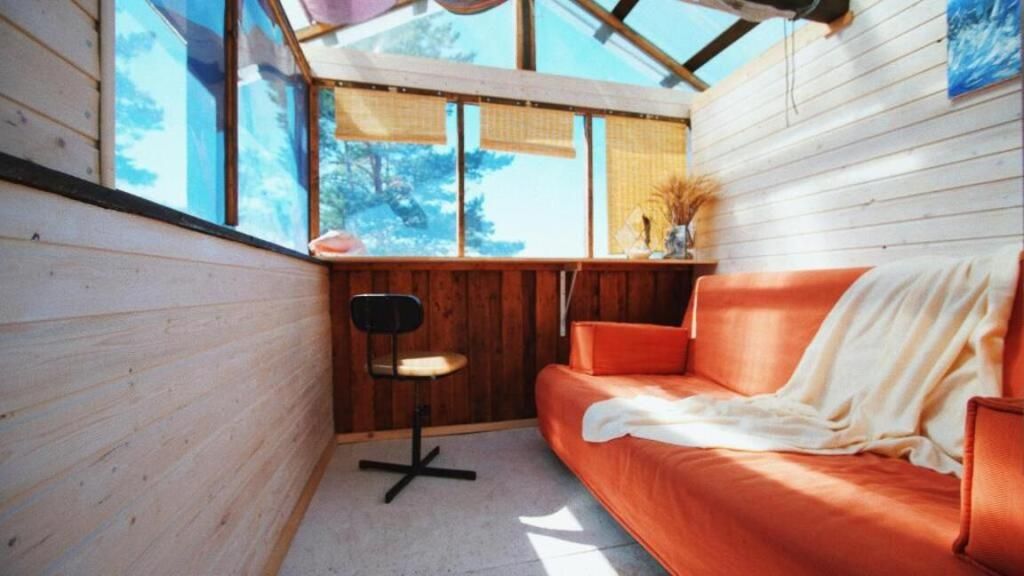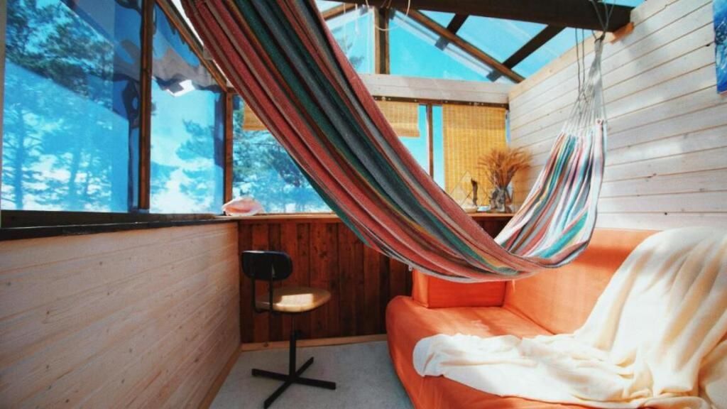 Домик Сёрф на крыше с красивым видом из окна