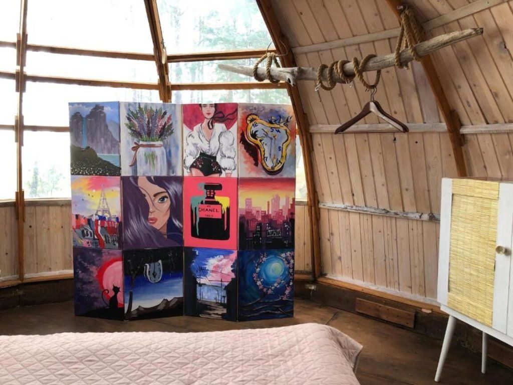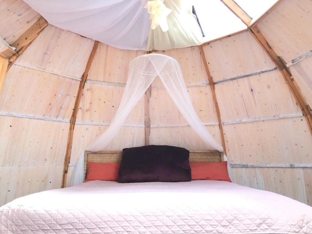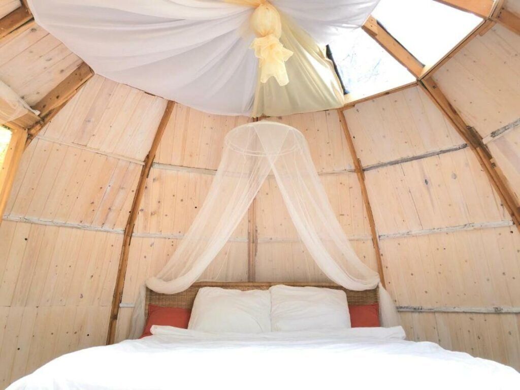 Двухместный Шатёр Геокупол с красивым видом из окна двуспальная кровать
