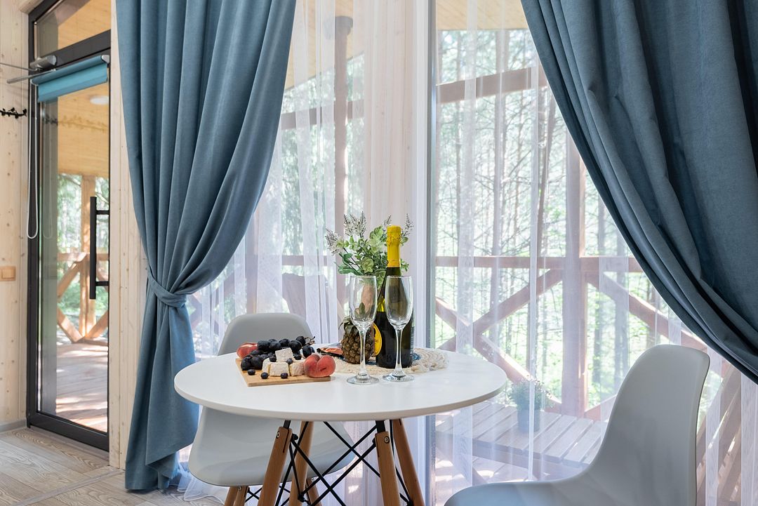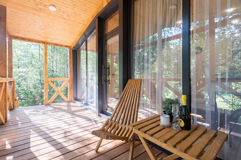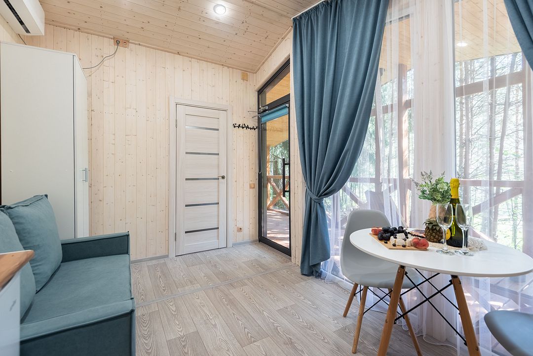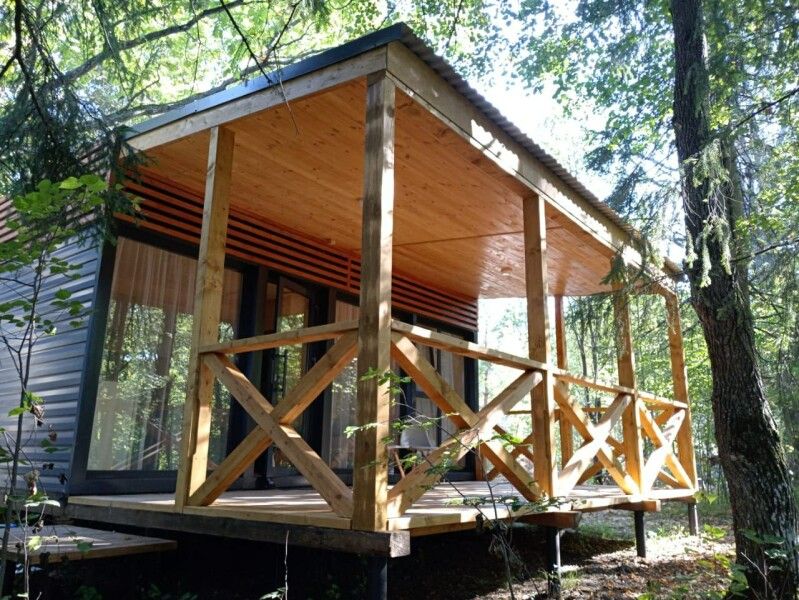 - домики с большими панорамными окнами;