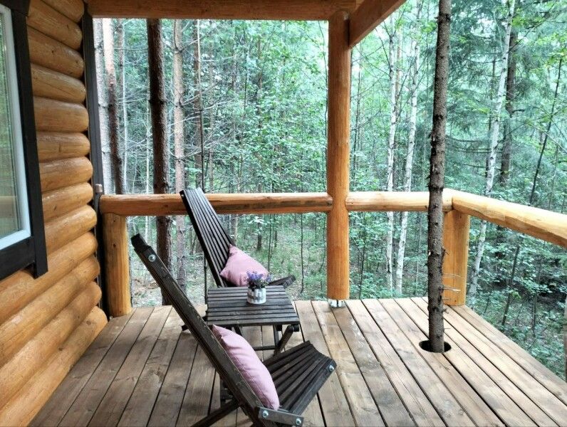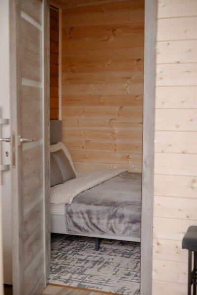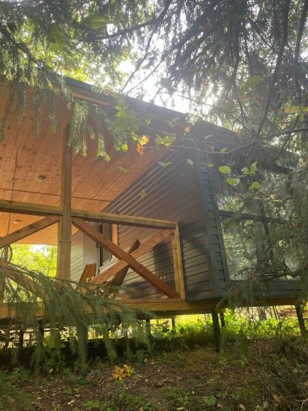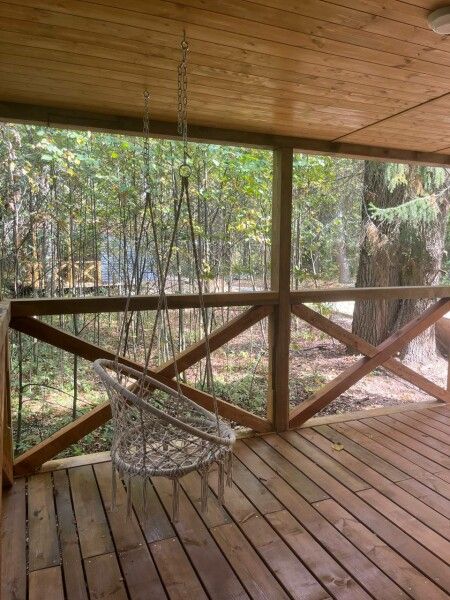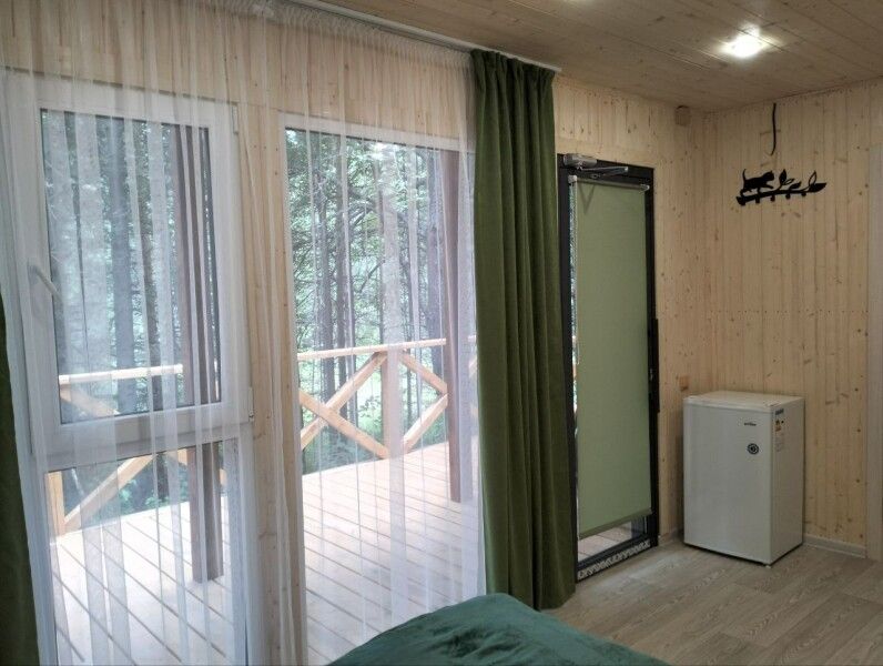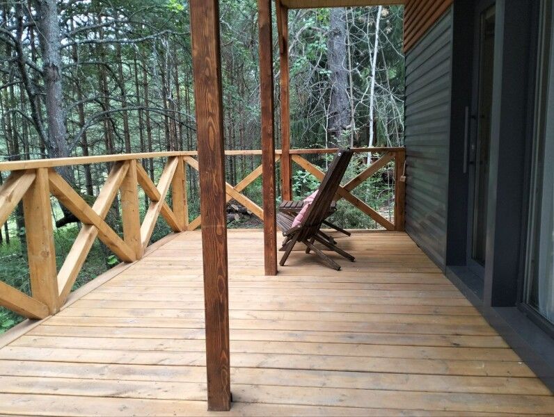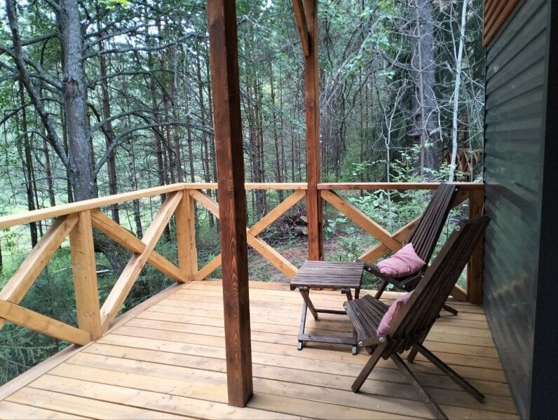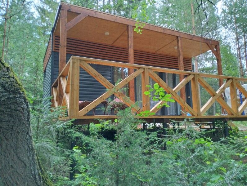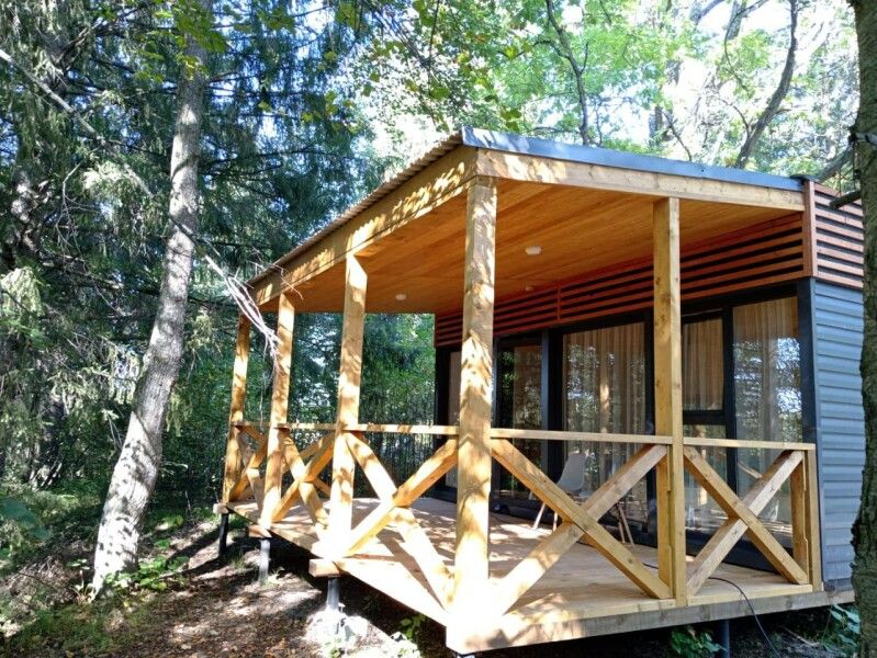 Небольшое но очень уютное бунгало прямо посредине леса со своей огромной террасой для уютного вечера или спортивного утра. В домике есть все, чтобы приготовить вкусный завтрак — холодильник, микроволновая печь, чайник, посуда, столовые приборы, бойлер для горячей воды.