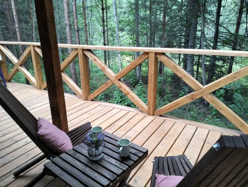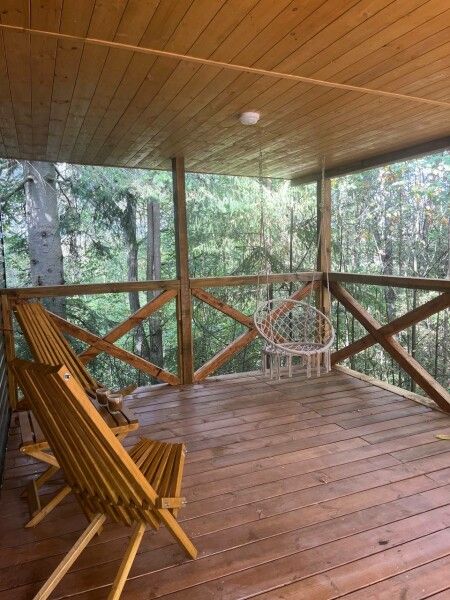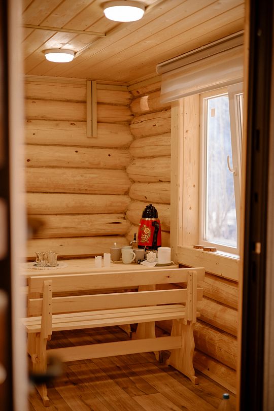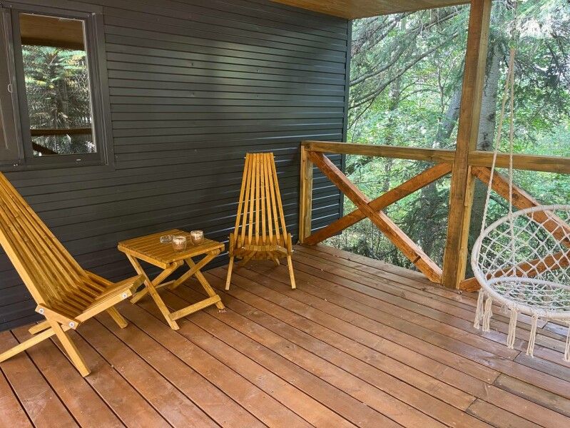 - Примечательно, что прямо в домике есть свой чан, где вы сможете расслабиться и насладиться горячими процедурами в любое время, спуск в Чан прямо с террасы. Стоимость чана входит в стоимость проживания.