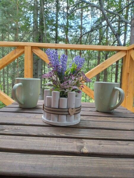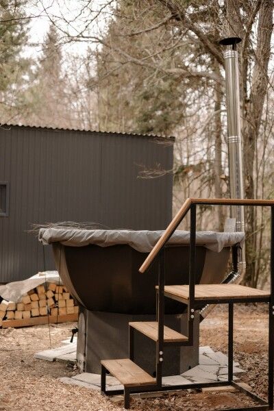 Откройте для себя удовольствие от отдыха в банном чанe на свежем воздухе — подогреваемый чан позволит вам не только согреться, но и насладиться великолепием окружающей природы. В качестве приятного бонуса, чан украшен хвойными ветками, создавая атмосферную обстановку для релакса.