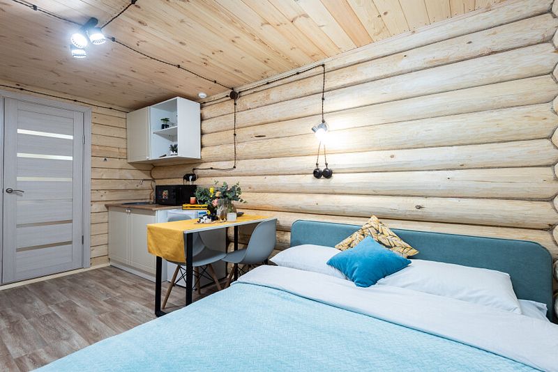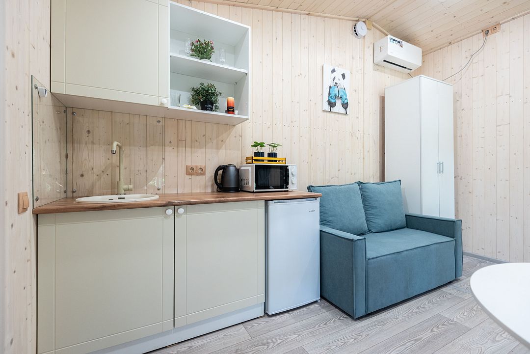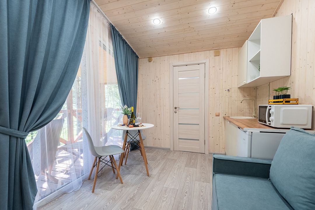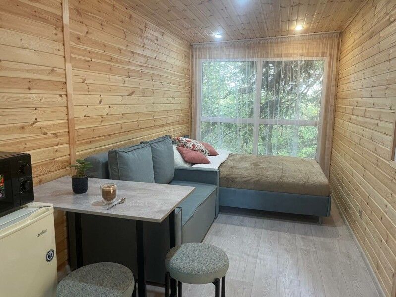Новый комбинированный дом Бунгало №9 площадь 32кв.м. с отдельной спальней. Панорамное увеличенное окно.