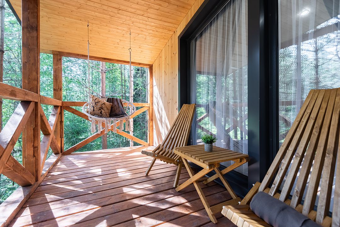 - Уютная терраса с комфортными креслами Кентукки, где можно наслаждаться согревающими напитками и прекрасными видами;