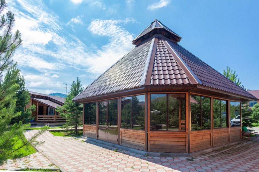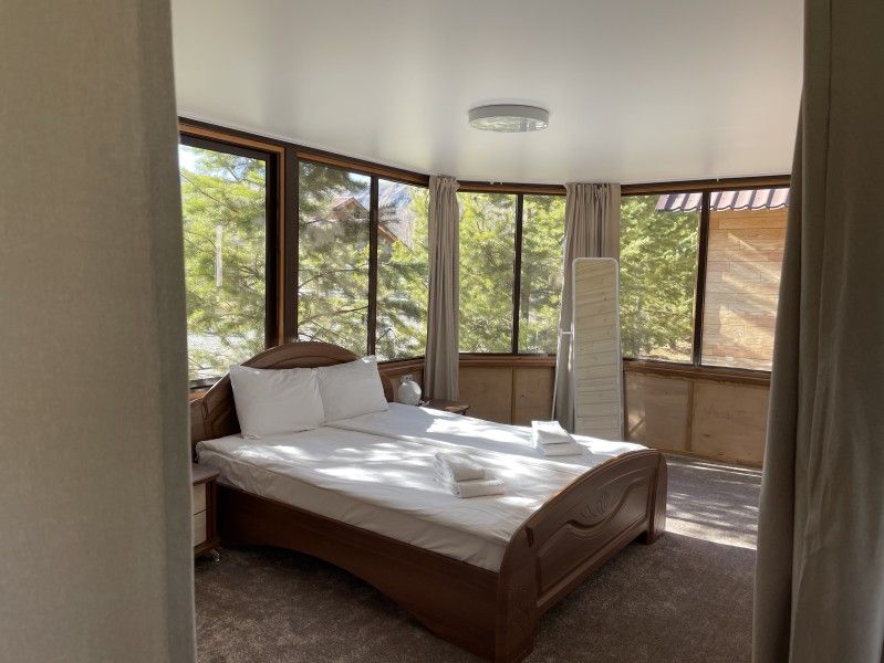 Уникальный домик в форме Алтайской юрты с окнами по всей окружности. Имеет собственную мангальную зону.