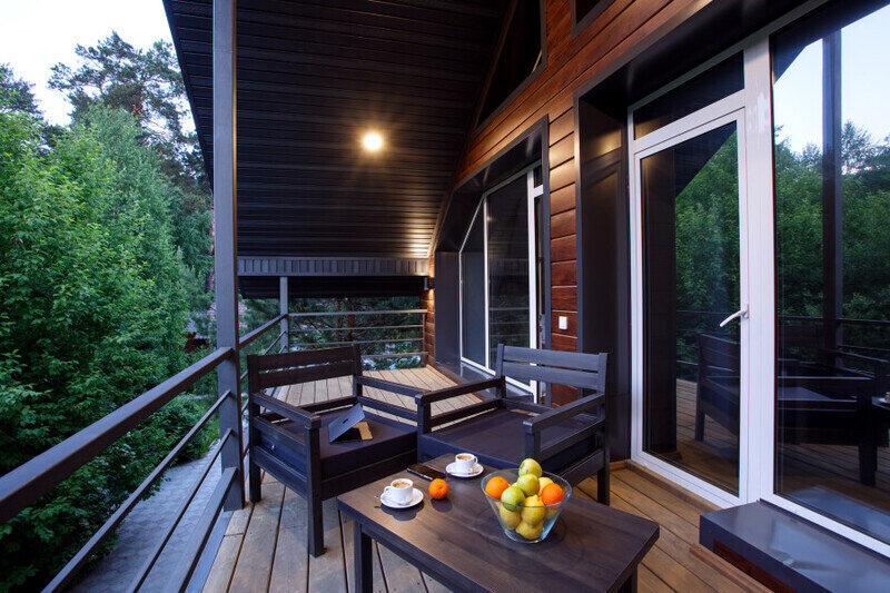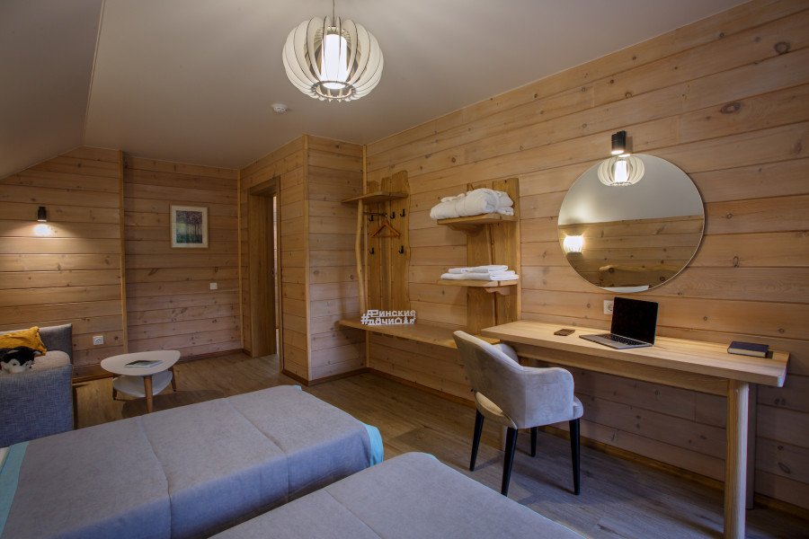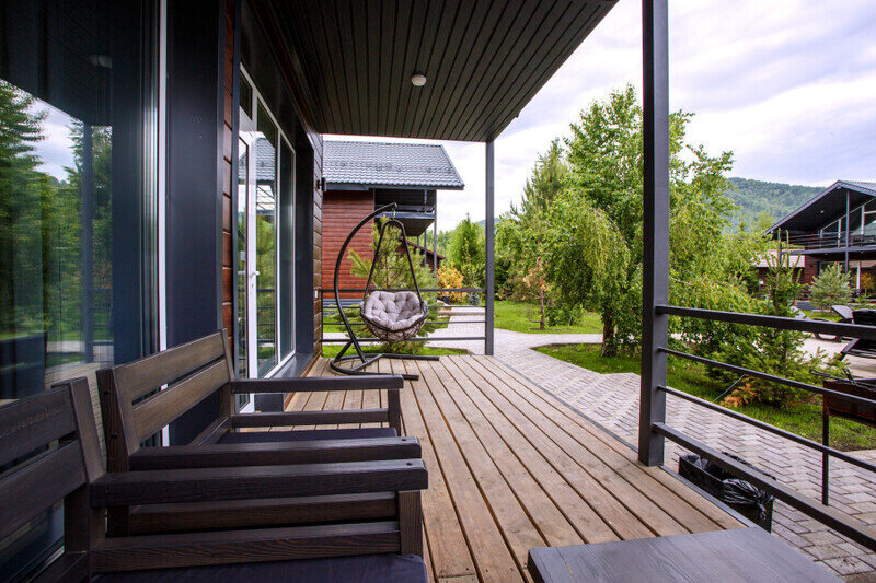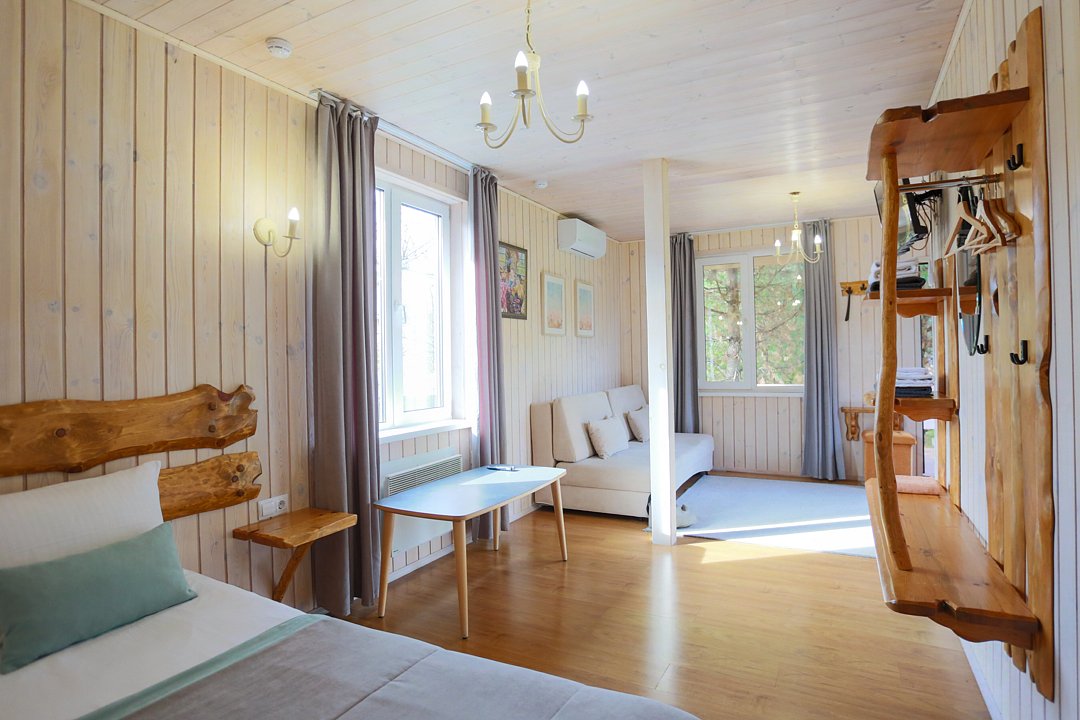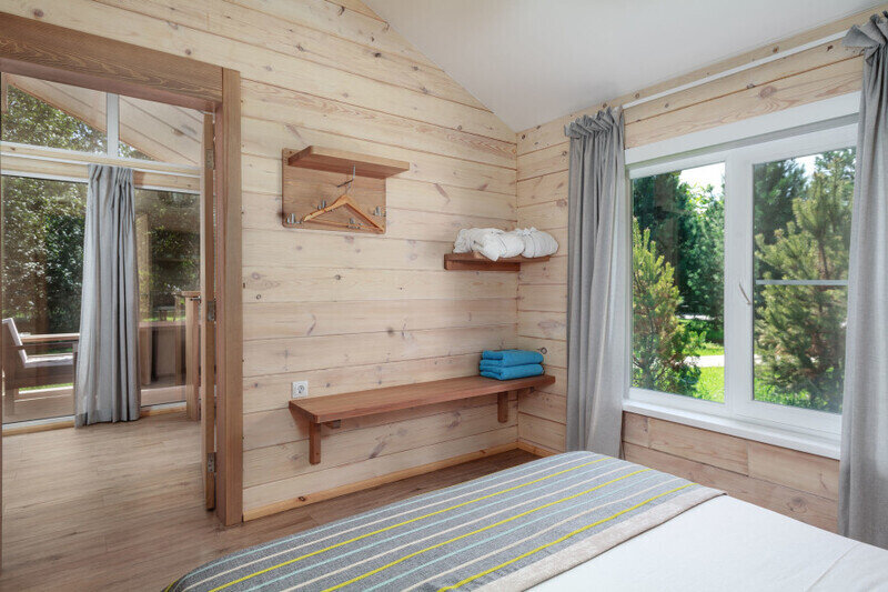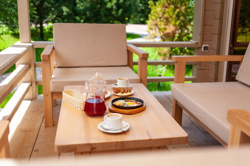 Отдельно стоящие двухкомнатные шале с верандой и мебелью ручной работы