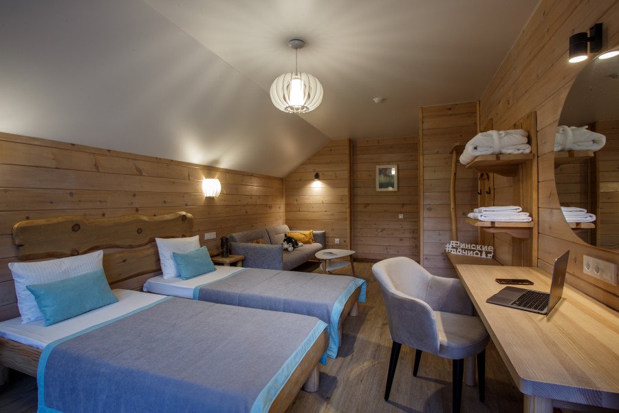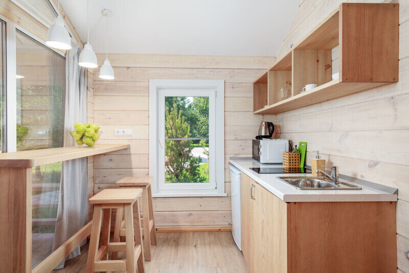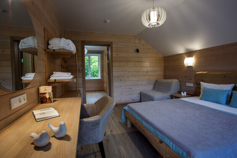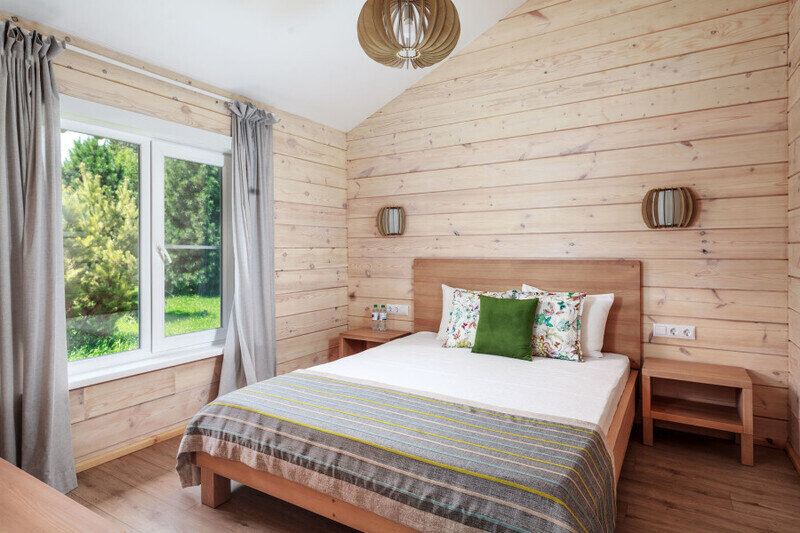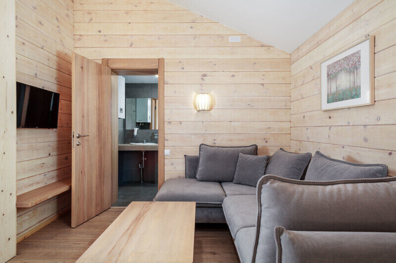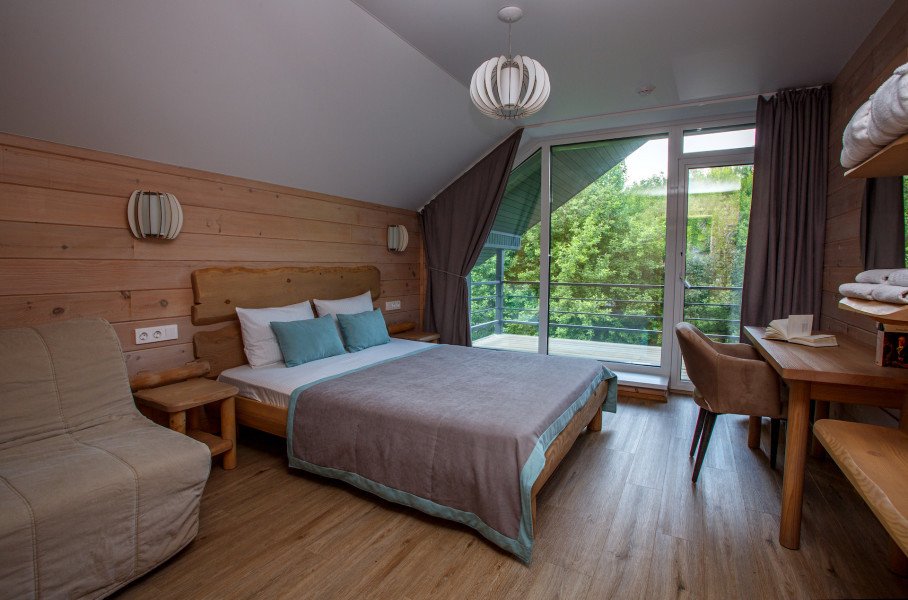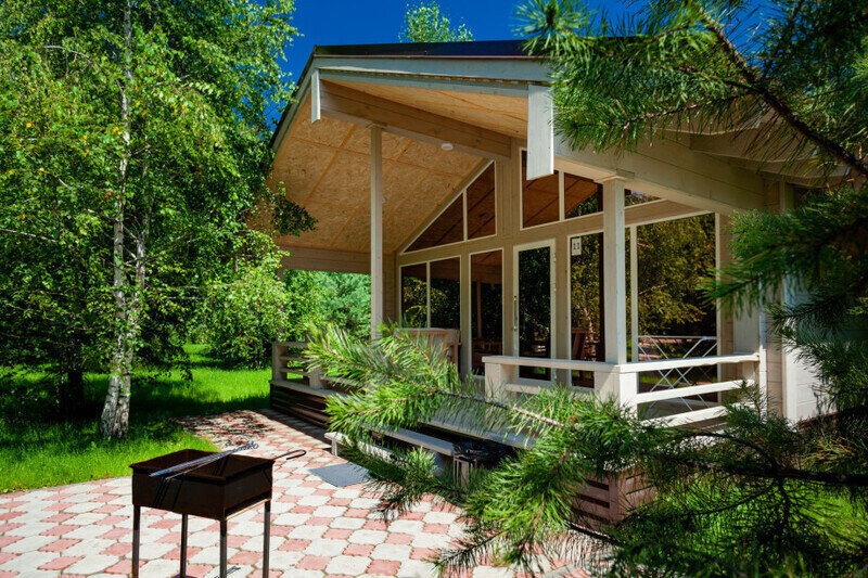 Отдельно стоящие двухкомнатные шале с верандой и мебелью ручной работы