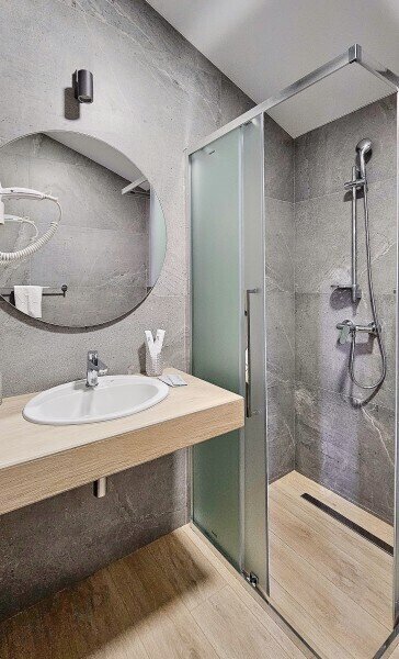 Номер стандарт улучшенный, для современного и комфортного проживания. Кондиционер, WC, душевая кабина, TV с плоским экраном, WI-FI, чайник и набор посуды для чаепития, балкон.