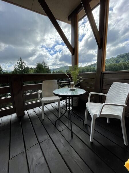 Однокомнатный домик шале с террасой и собственной мангальной зоной.