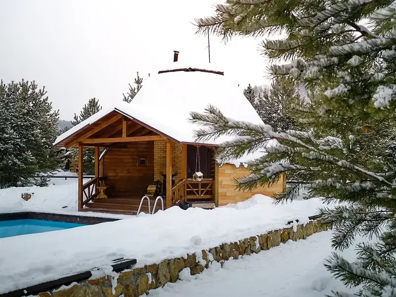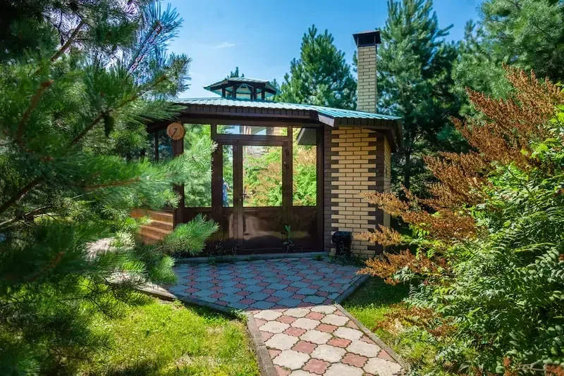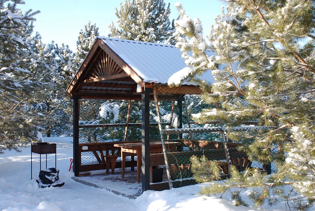 Отдельно стоящий двухкомнатный шале с террасой, камином и собственной беседкой с печью под казан и мангальной зоной.