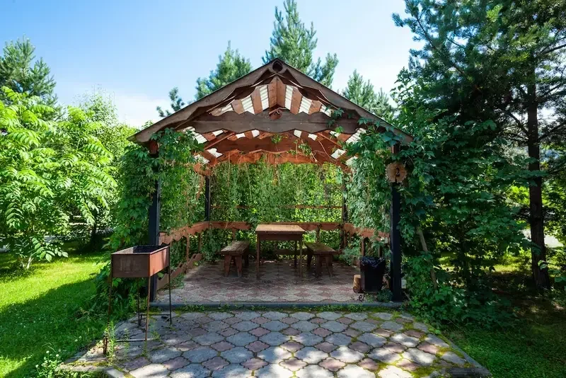 Собственная беседка с печью под казан и мангальной зоной.