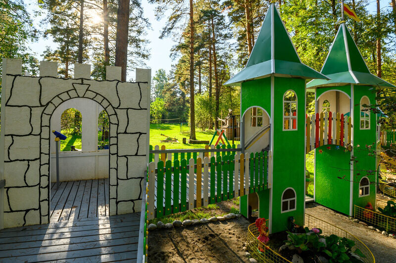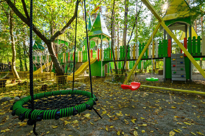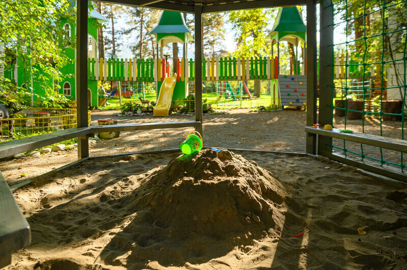 В дождливую погоду популярностью пользуется большой игровой павильон. Он закрытый, просторный, с витражными стенами. Зонированное пространство, подходящее для детей любого возраста.