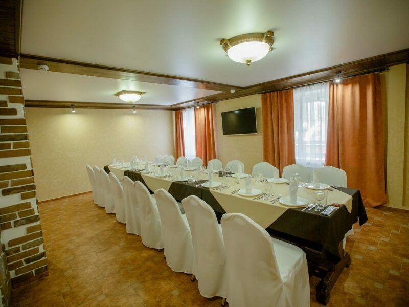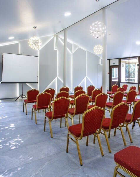 Удобный конференц-зал для проведения конференций, семинаров, тренингов и других мероприятий. Здесь могут комфортно расположиться до 150 человек с различными вариантами рассадки участников. Высота помещения позволяет установить любой вид оборудования.