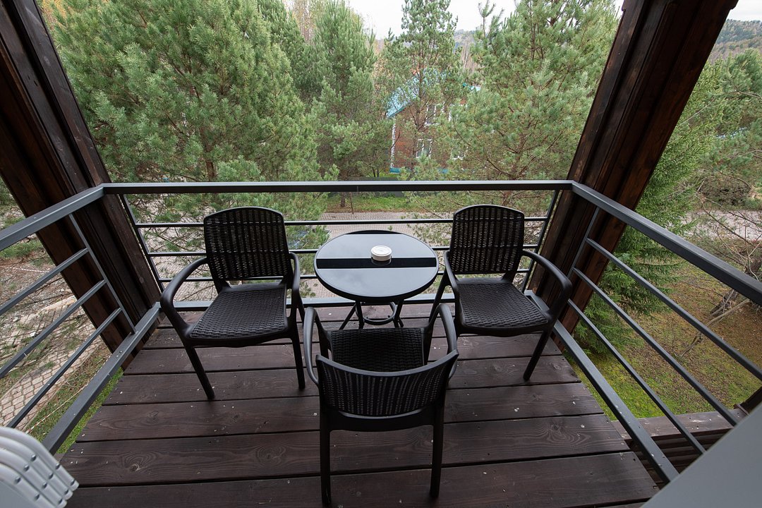 Отдельно стоящие двухэтажные шале для двоих с балконом, террасой и мебелью ручной работы.