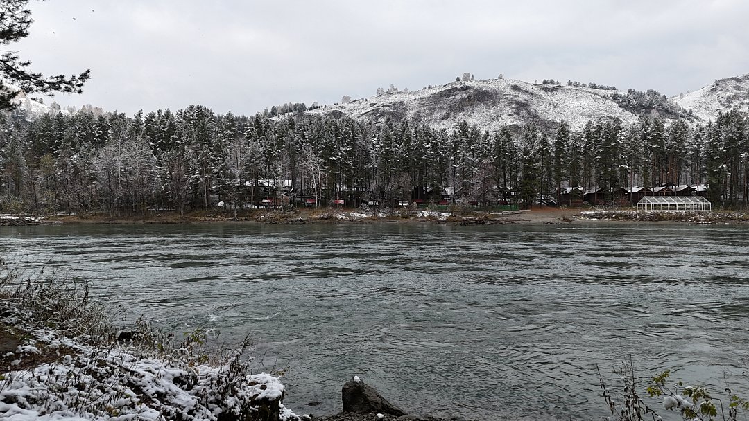 спальня, зал с кухонной зоной, холодильник, кондиционер, панорамные тонированный окна, веранда, мебель ручной работы, Wi-Fi. Обособленная территория. Собственная мангальная зона. Проход к берегу Катуни через общий выход.