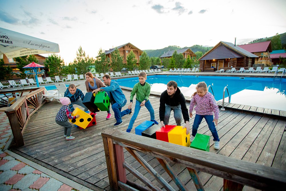 В ресторане комплекса гостям предлагают богатую европейскую кухню, местные блюда из экологически чистых алтайских продуктов и обширную карту бара. SPA-комплекс предлагает хаммам, джакузи с гидромассажем и аэромассажем, массаж и другие SPA-процедуры. Изумрудный город – крупнейший игровой комплекс на Алтае, созданный по мотивам знаменитой сказки, где дети всех возрастов могут насладиться волшебством и весельем.