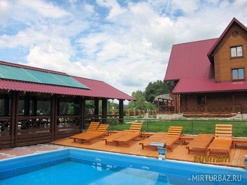 В трехэтажном коттедже находятся шесть благоустроенных номеров (зимой 2008 в номерах был сделан капитальный ремонт, обновлен интерьер), кафе на первом этаже и просторный холл с камином на втором этаже. Один двухкомнатный номер класса «люкс» с окнами на Катунь находится на третьем этаже коттеджа. В номера есть спальный гарнитур, туалетный столик, в гостиной - мягкая мебель, журнальный столик, шкаф, холодильник. Два полногабаритных однокомнатных номера класса «полулюкс» обставлены двуспальными кроватями, раздвижными диванами, шкафами и холодильниками. Еще три однокомнатных стандартных номера отличаются от «полулюксов» немного меньшей площадью и обстановкой. В одном из стандартных номеров с двумя двуспальными кроватями есть возможность дополнительного размещения.