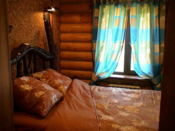- Второй этаж, двухкомнатный номер (гостиная с кухней, спальня, туалетная комната с душем). Балкон. Авторская мебель из дерева, эксклюзивный дизайн интерьера.