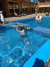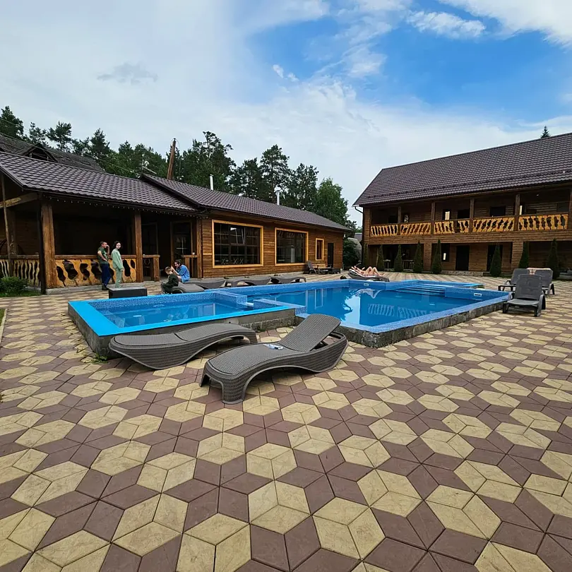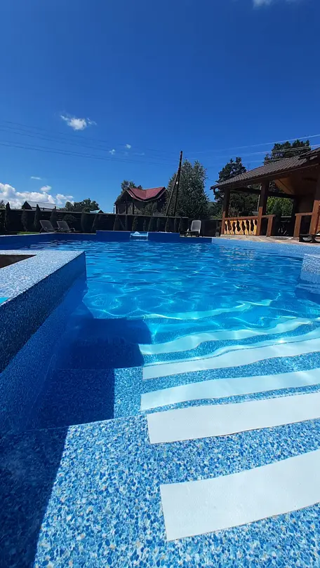 Тип бассейна: открытый бассейнРядом с бассейном: шезлонгиПериод работы: летний сезонТеплый бассейн в летний период.