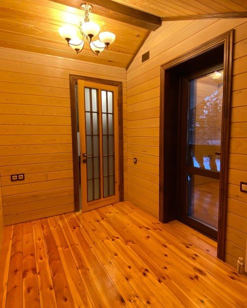 В каждой спальне двуспальная кровать, диван, телевизор, душ, туалет. В доме обустроена кухонная зона со всей необходимой техникой и посудой. Есть балкон и веранда.