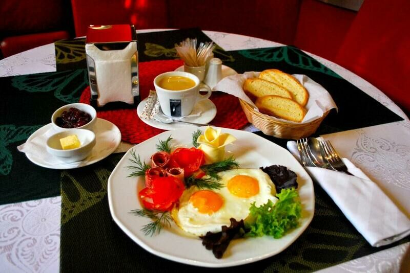 По утрам в мини-отеле «Махаон» сервируют континентальный завтрак.