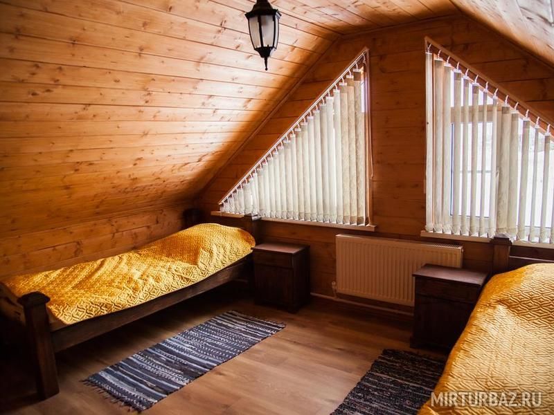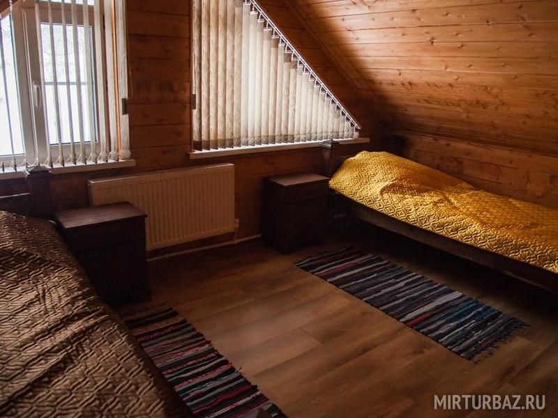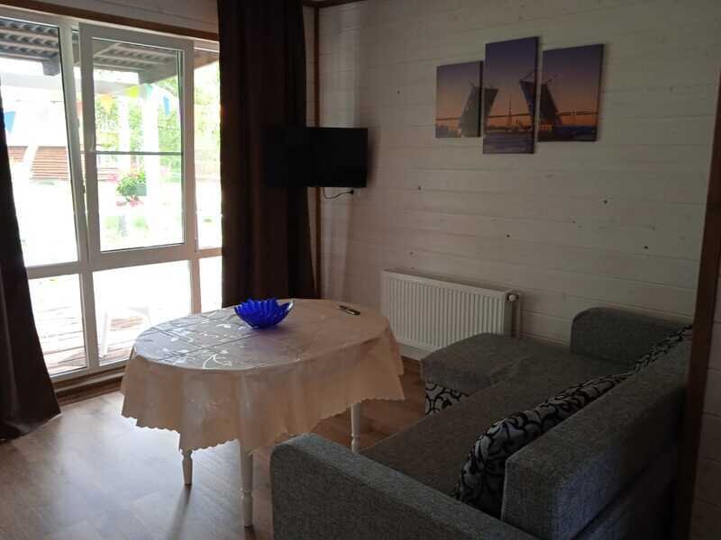 4 коттеджа. В доме 2 спальни с двухспальными кроватями 2 спальни с одной двухспальной и односпальной кроватями. На территории имеется зона барбекю, качели, детская площадка, волейбольная площадка.